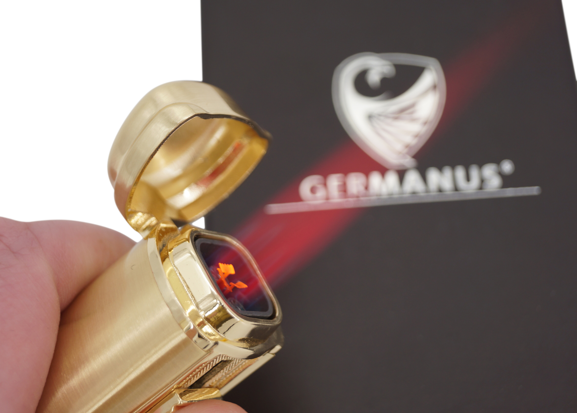 GERMANUS Jetflame Feuerzeug "Kaventsmann" mit 4 Flammen in Gold