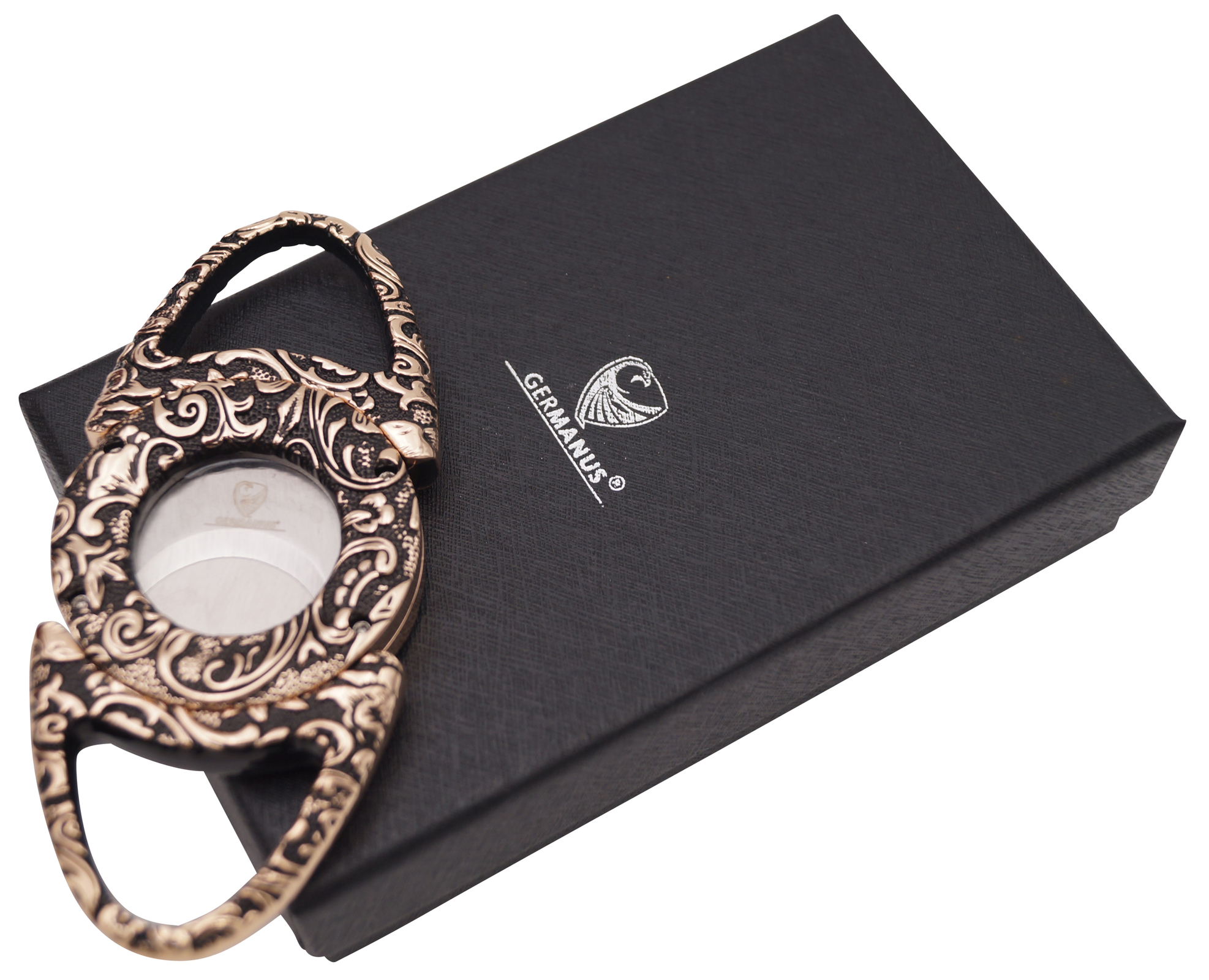 Produktinformationen "GERMANUS Zigarrencutter "Old Age" Gold Schwarz mit Ring 63"