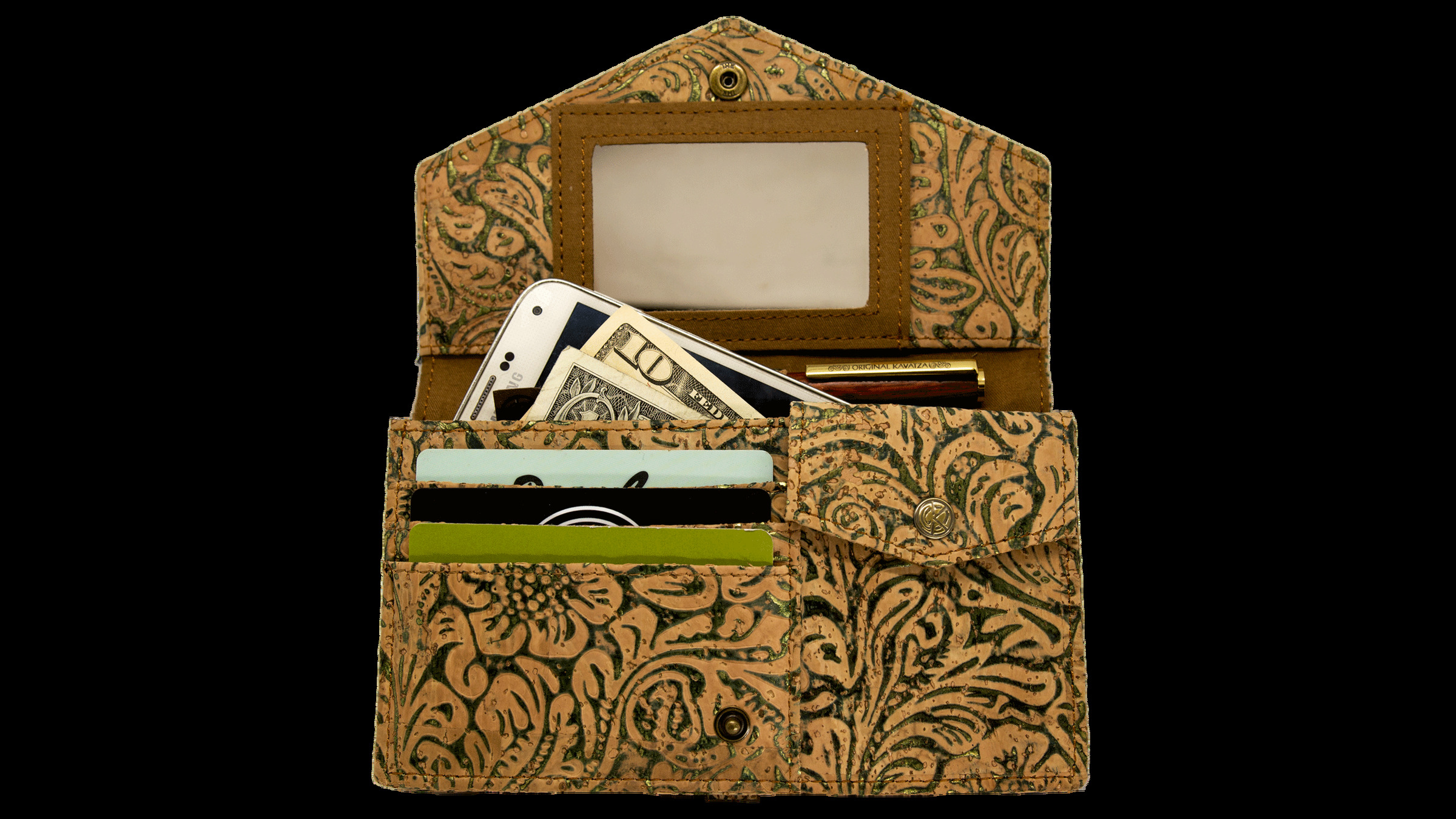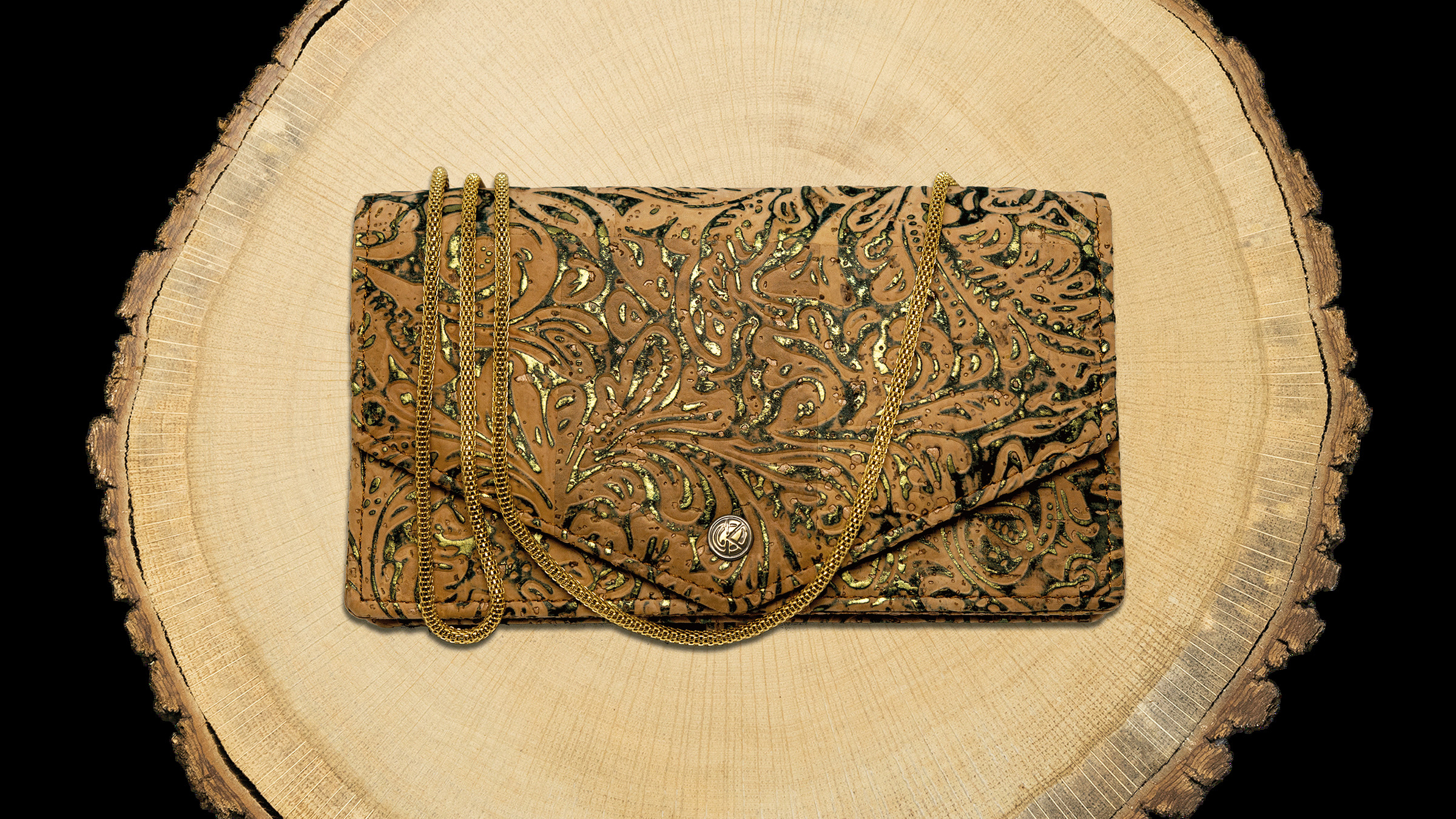Cork does gold glam. This indispensable clutch is more than an accessory. It’s a fashion statement. A high fashion statement.